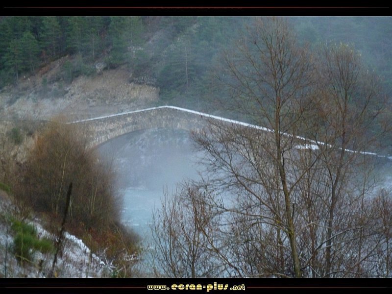Pont sur le Var dans la brume au lieu dit les Scaffarels (04) - © EcranPlus