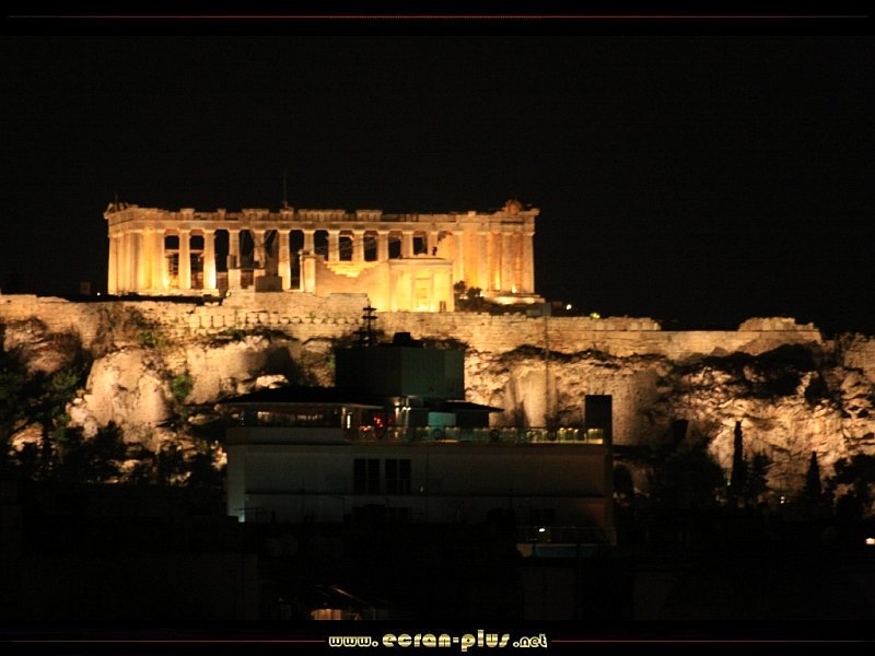 Vue sur le Parthénon et l`Acropole de nuit depuis la terrasse panoramique du Novotel - Athènes - © EcranPlus