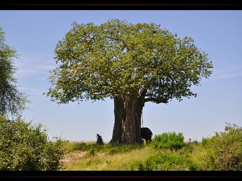 Eléphant derrière un baobab en Tanzanie - © mamour