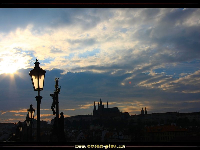 Soleil couchant sur le Pont Charles et le chateau - Prague - République Tchèque - © EcranPlus