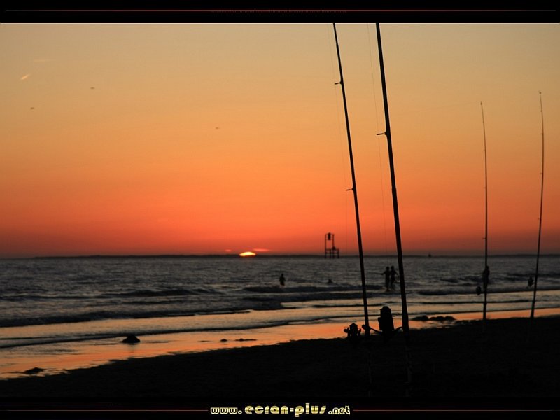 Pécheurs dans le coucher de soleil sur la plage de la Grande Cote - Saint Palais sur Mer (17) - © EcranPlus