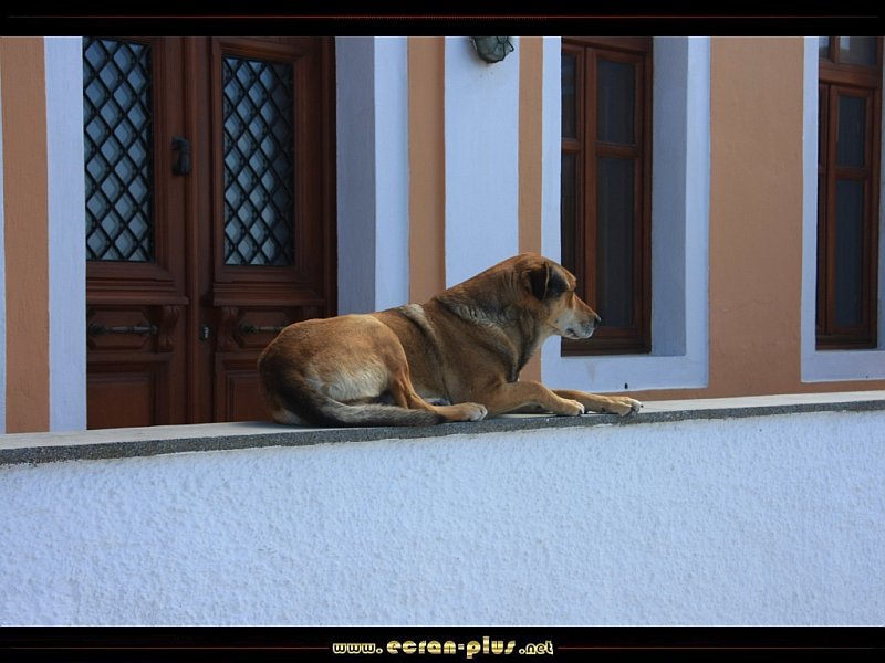 Chien sur un mur à Imerovigli - Santorin - Grèce - © EcranPlus