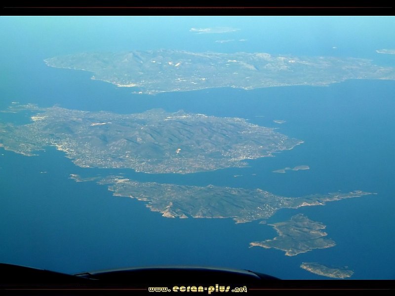 Vue sur les Cyclades, de bas en haut : Strongily, Despotiko, Antiparos, Paros, Naxos, Donousa, l`ensemble s`étend sur 80km - Grèce - © EcranPlus |