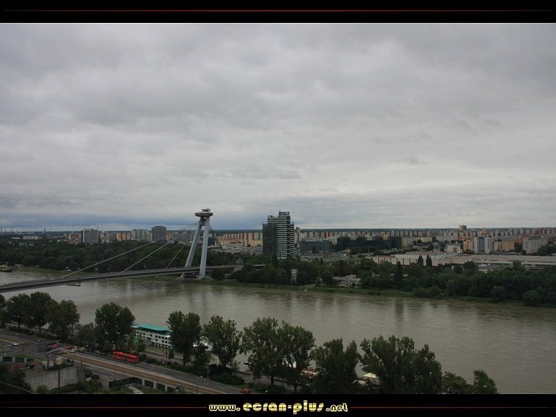 Le Danube, le nouveau pont et la ville moderne de Bratislava, dans le fond les usines du groupe Audi Volkswagen - Slovaquie - © EcranPlus