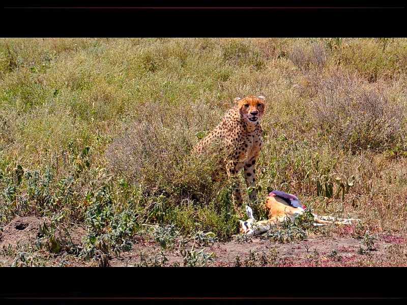 Guepard avec sa proie, une antilope, en Tanzanie - © mamour