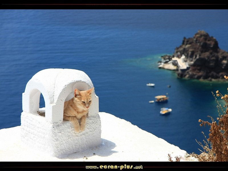 Chat dans une cheminée à Oia - Santorin - Grèce - © EcranPlus