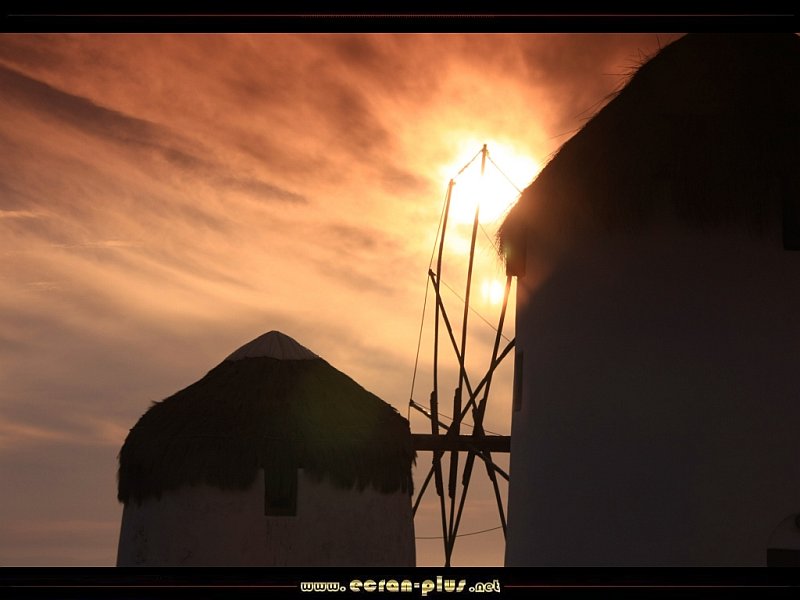 Coucher de soleil sur les moulins de Mykonos - Cyclades - Grèce - © EcranPlus