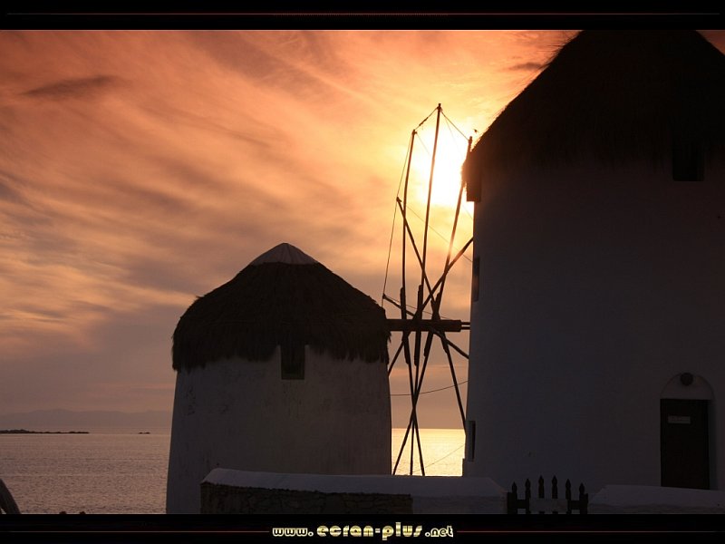 Coucher de soleil sur les moulins de Mykonos - Cyclades - Grèce - © EcranPlus
