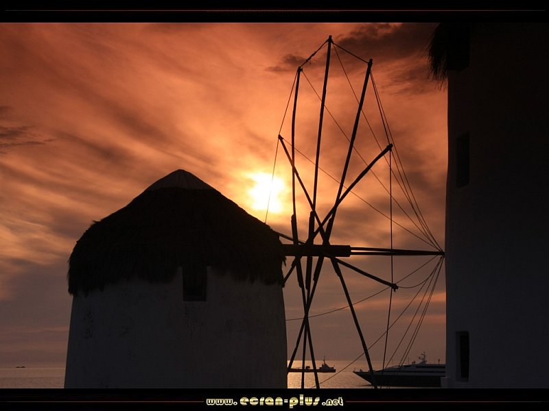 Coucher de soleil sur les moulins de Mykonos - Cyclades - Grèce - © EcranPlus