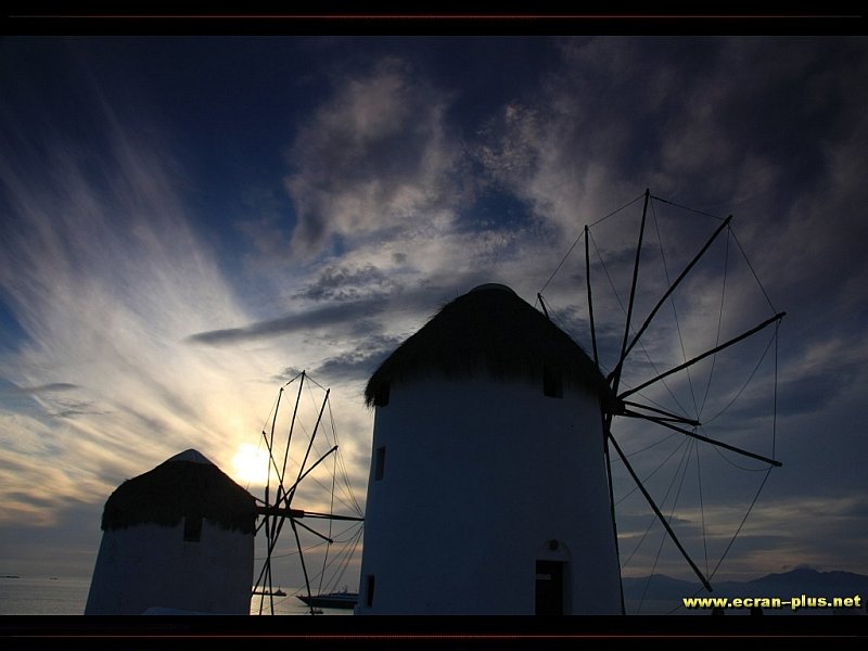 Coucher de soleil sur les moulins de Mykonos - Cyclades - Grèce - © EcranPlus