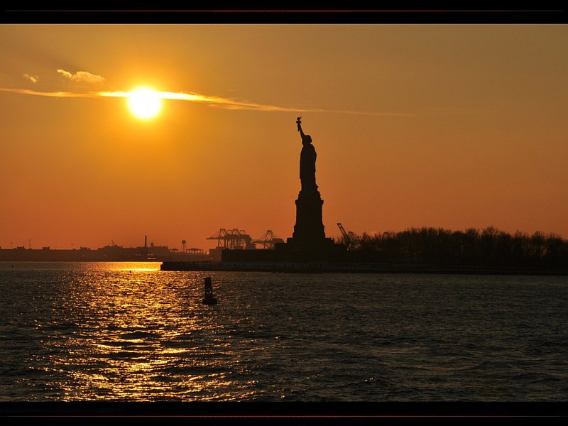Coucher de soleil sur la Statue de la Liberté - New York - © mamour