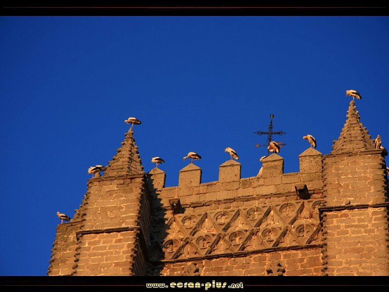 Cigognes au sommet d`une église à Avila - Castille - Espagne - © EcranPlus