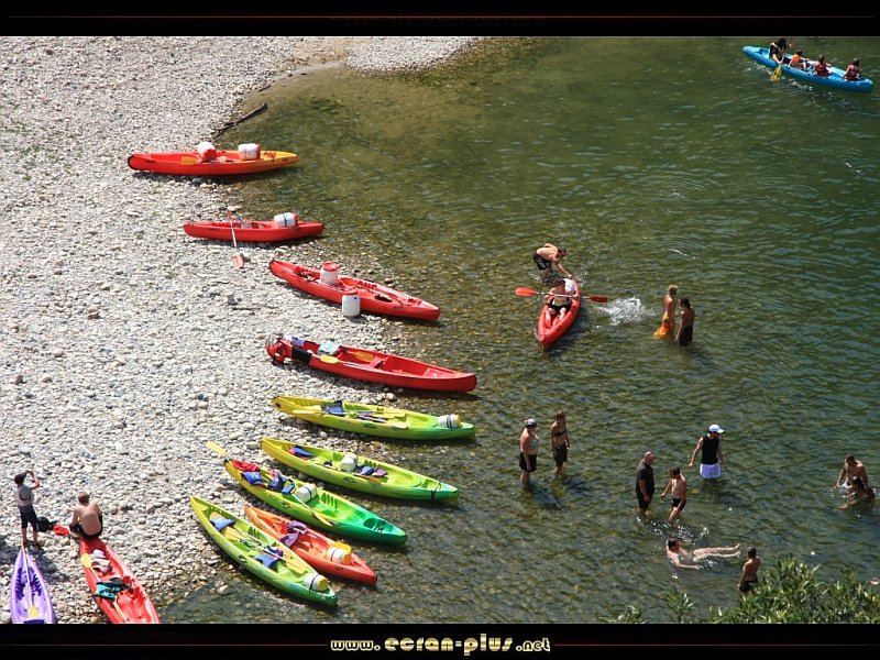 Canoes au bord de l`Ardèche à Vallon Pont d`Arc (07) - © EcranPlus