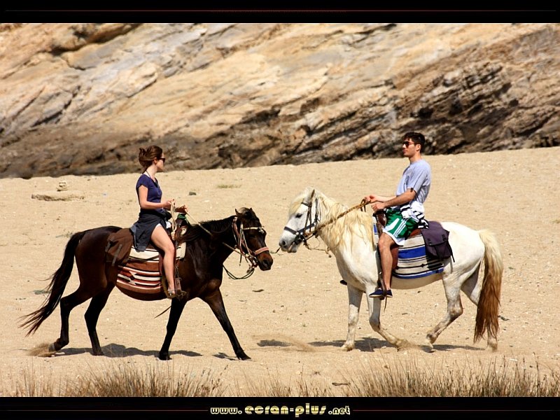 Cavaliers sur la plage de Fokos - Mykonos - Cyclades - Grèce - © EcranPlus
