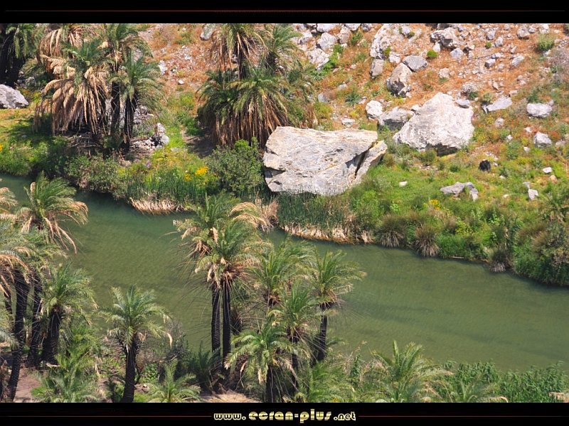 La rivière Koyrtaliotiko traverse une palmeraie dans les gorges de Preveli avant de se jeter dans la mer - Crète - Grèce - © EcranPlus