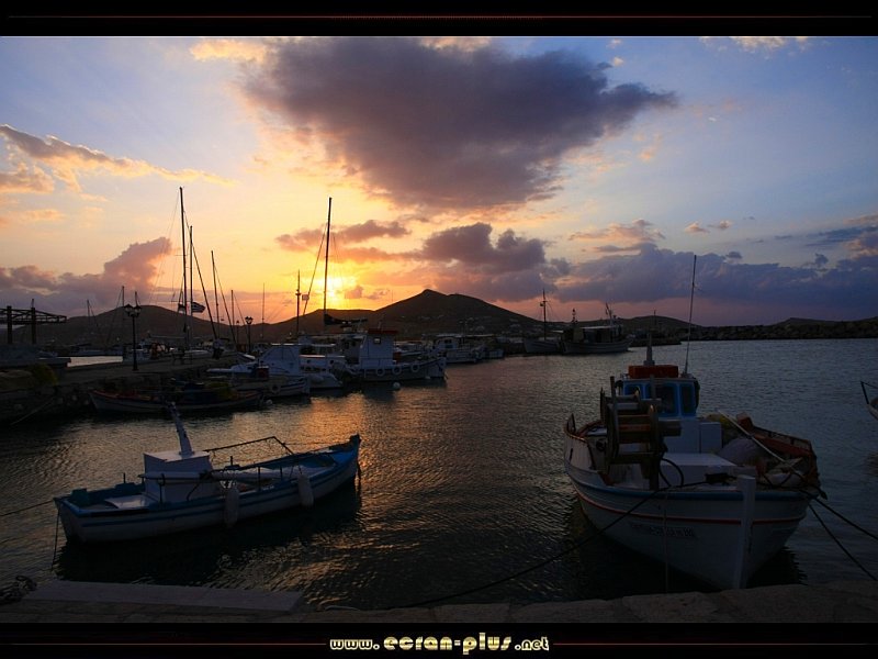 Coucher de soleil sur le port de Naoussa - Paros - Cyclades - Grèce - © EcranPlus