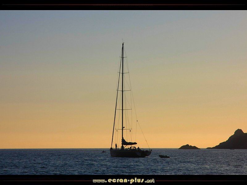 Voilier au large du Capo Rosso dans le couchant - Capo Rosso - Corse - © EcranPlus