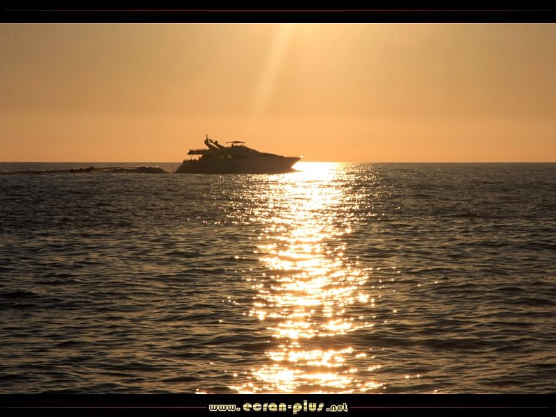 Bateau dans le soleil couchant à Cargèse - Corse - © EcranPlus