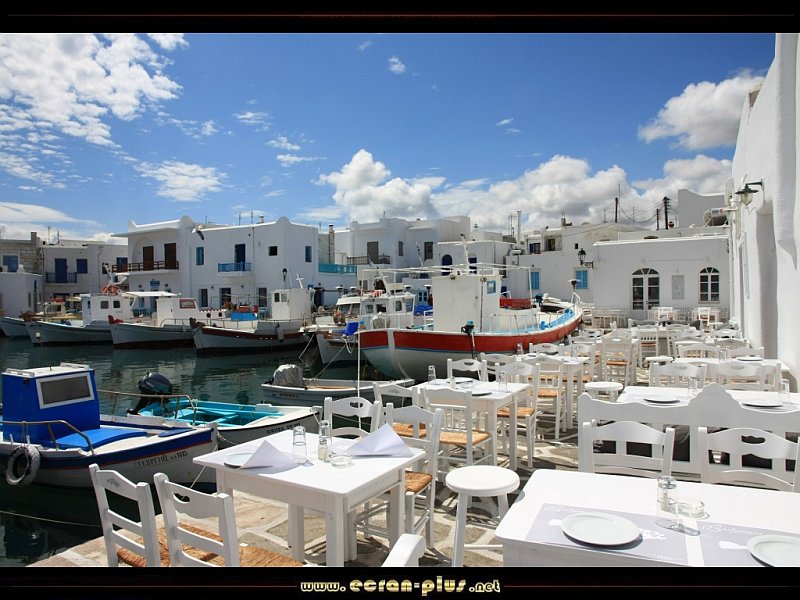 Terrasses sur le port de Naoussa - Paros - Cyclades - Grèce - © EcranPlus