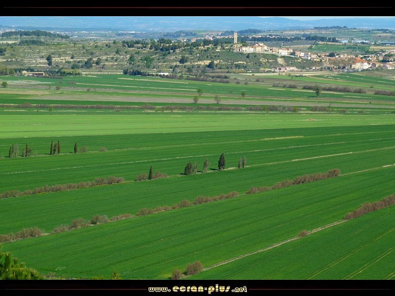 Vue sur l`étang asséché de Montady et le village depuis l`oppidum d`Enserune (34) - © EcranPlus