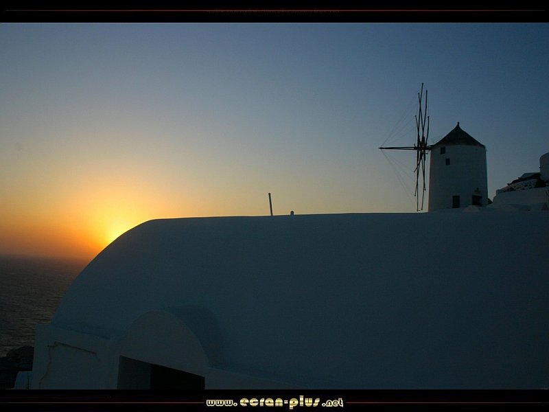 Coucher de soleil sur les moulins d`Oia - Santorin - Cyclades - Grèce - © EcranPlus
