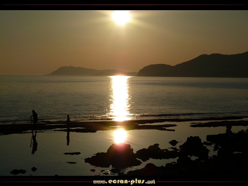 Coucher de soleil sur les pécheurs de coquillages à la plage de l`Almanarre - Carqueiranne Hyères (83) - © EcranPlus