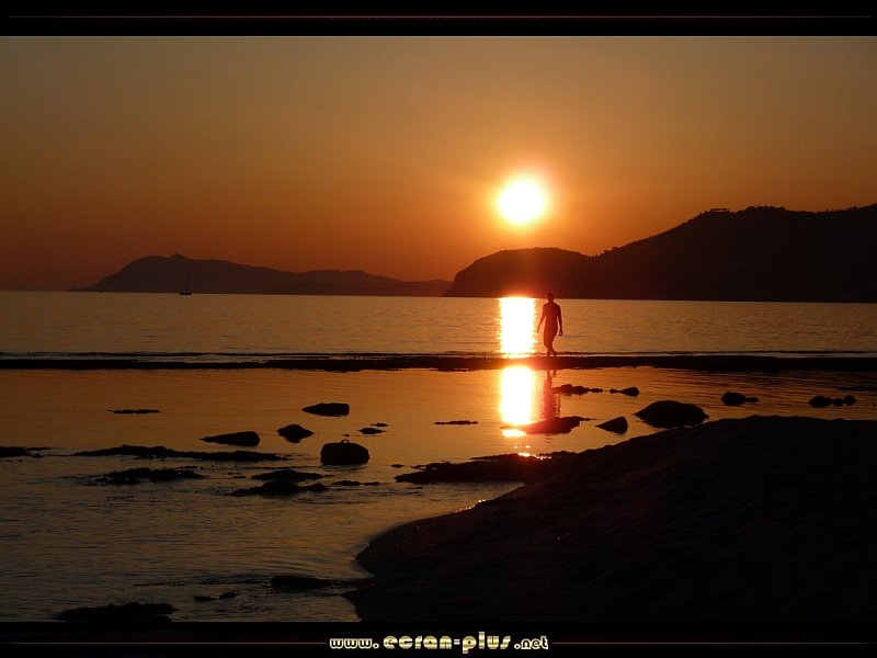 Coucher de soleil sur les pécheurs de coquillages à la plage de l`Almanarre - Carqueiranne Hyères (83) - © EcranPlus