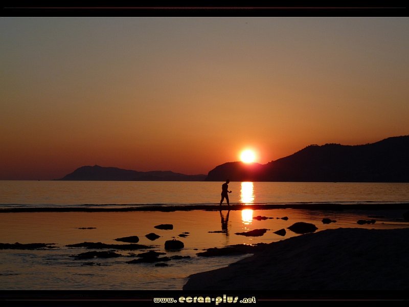Coucher de soleil sur les pécheurs de coquillages à la plage de l`Almanarre - Carqueiranne Hyères (83) - © EcranPlus