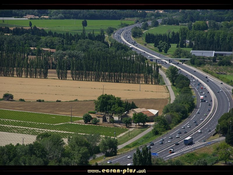L`autoroute A7 au pied de la forteresse de Mornas (84) - © EcranPlus