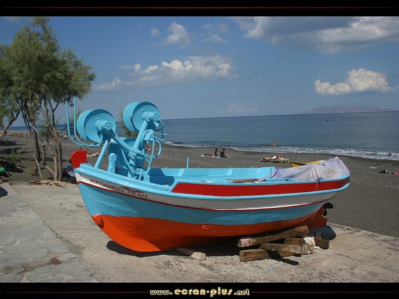 Bateau de pèche sur la plage de Kamari - Santorin - Cyclades - Grèce - © EcranPlus