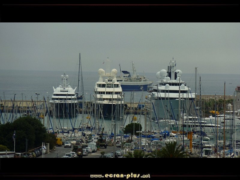 Vue sur le quai des milliardaires du port Vauban avec les yachts Katara, Sarafsa et Anastasia - Antibes - © EcranPlus