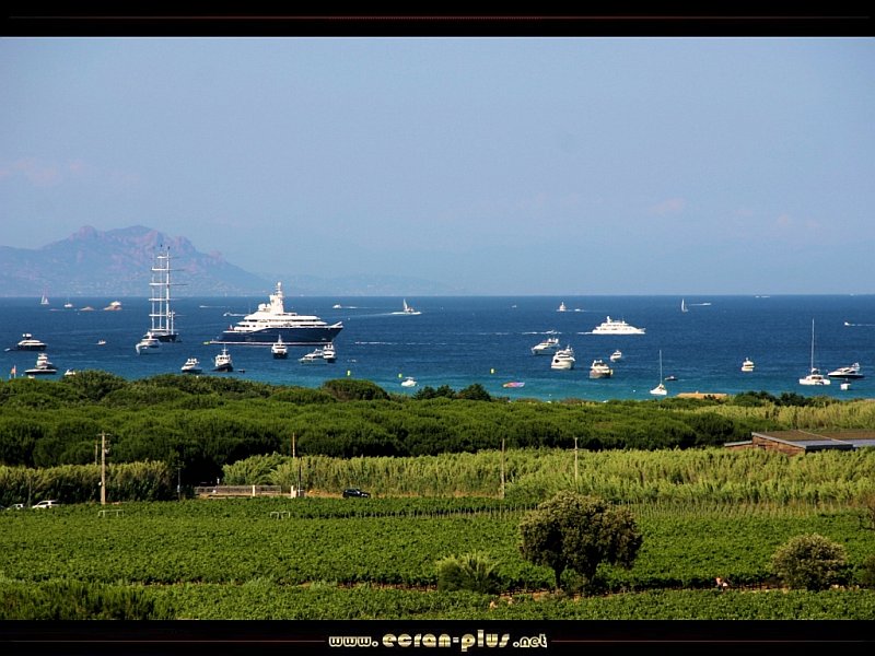 Les vignes de la presqu`ile de Saint Tropez et les bateaux devant les plages de Pampelonne (83) - © EcranPlus