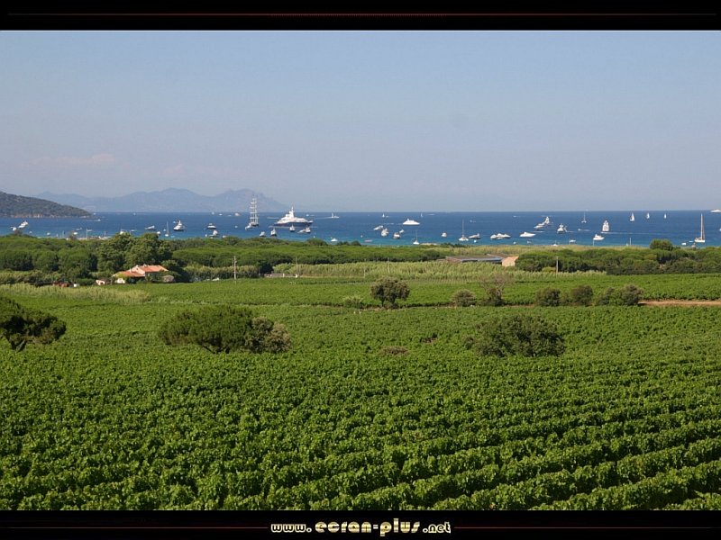 Les vignes de la presqu`ile de Saint Tropez et les bateaux devant les plages de Pampelonne (83) - © EcranPlus