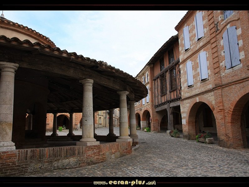 La halle du marché et la place à Auvillar (82) - © EcranPlus