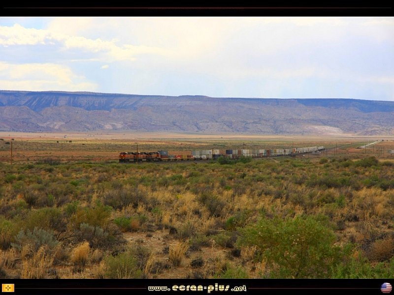 Paysage et train le long de la route 66 pre 1937 - Nouveau Mexique - USA - © EcranPlus
