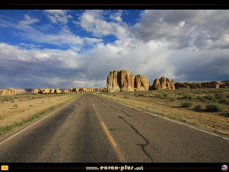 La vallée d`Acoma et Sky City dans le fond depuis la route de l`ouest - Nouveau Mexique - USA - © EcranPlus