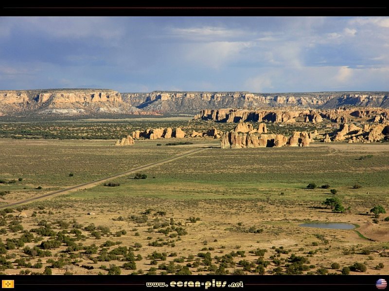 La vallée d`Acoma et Sky City dans le fond depuis la route de l`ouest - Nouveau Mexique - USA - © EcranPlus
