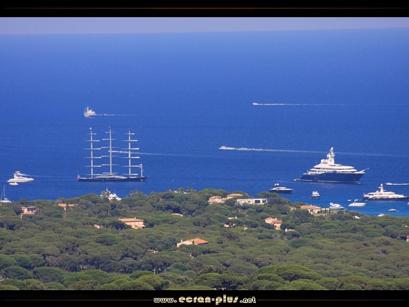 Les yachts dont le Maltese falcon et le Al Mirqab devant la presqu`ile de Saint Tropez (83) - © EcranPlus