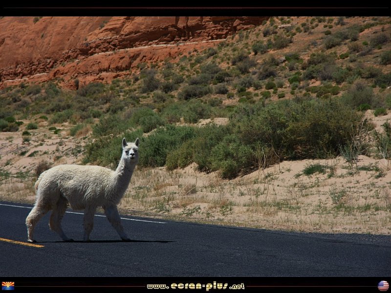 Lama vigogne au bord de l`Indian Route 15 dans le comté de Navajo - Arizona - USA - © EcranPlus