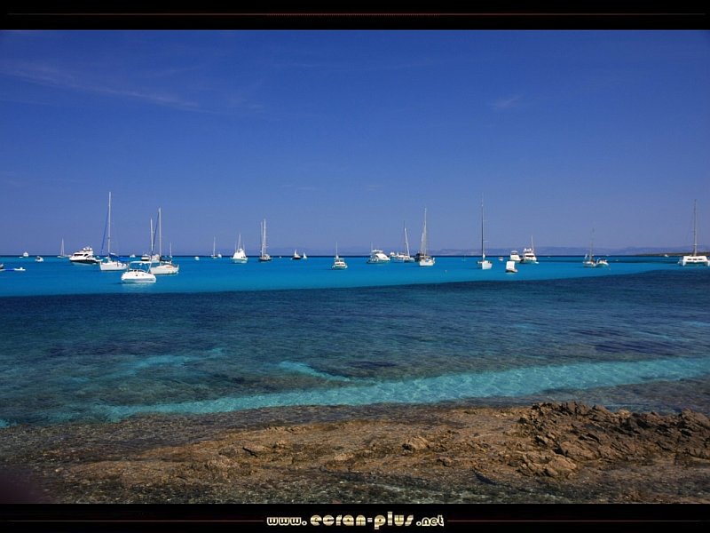 Bateaux face à la plage de la Pelosa - Stintino - Sardaigne - © EcranPlus