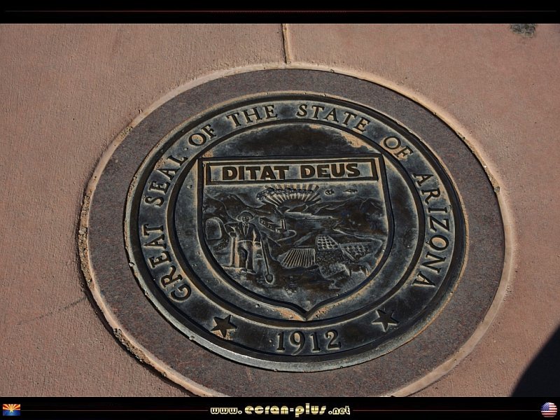 Four Corners - Le seul point des USA où 4 états convergent - Le sceau de l`Arizona - USA - © EcranPlus
