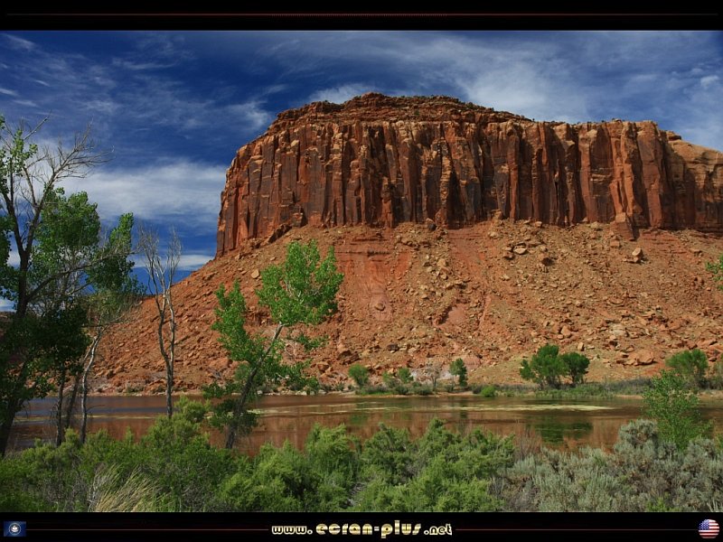 Les falaises et le lac d`Indian Creek dans la vallée d`Indian Creek - Utah - USA - © EcranPlus