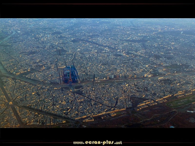 Vue aérienne de Paris, l`arc de Triomphe, la Seine, la Tour Eiffel - © EcranPlus