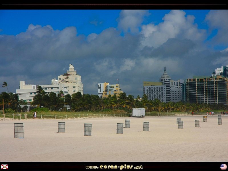 La plage et le parc de Miami Beach, le immeubles du quartier Art-Deco et les buildings des grand hotels - Floride - USA - © EcranPlus