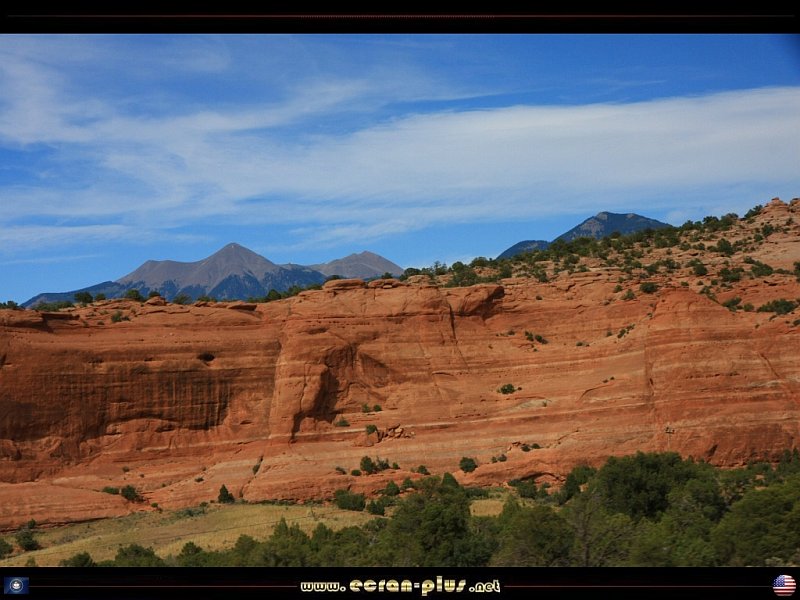 Falaises le long de la route US 191 entre Monticello et Moab et vue sur les LaSal Mountains - Utah - USA - © EcranPlus