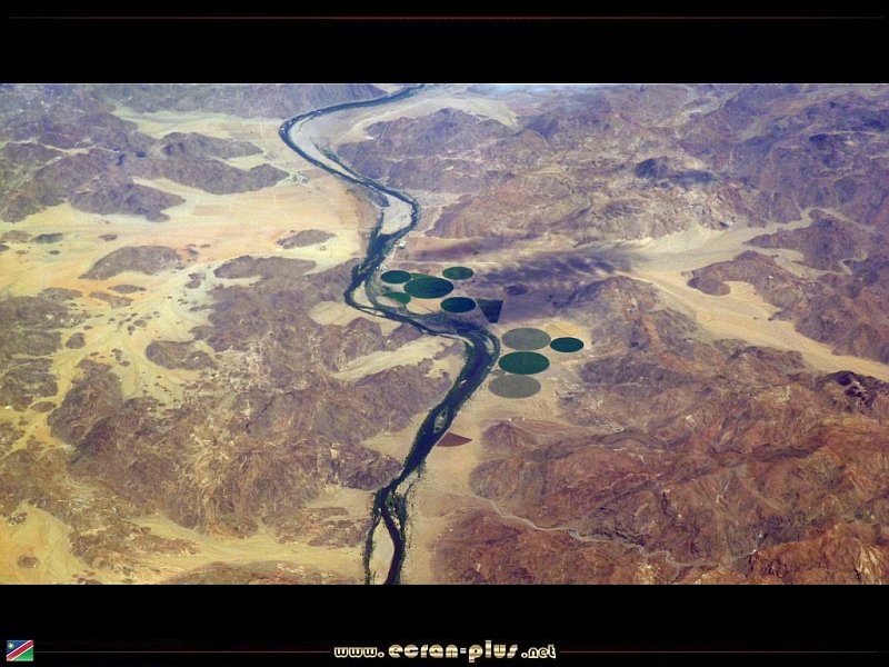 Cultures le long de l`Orange River qui marque la frontière entre la Namibie au nord (à droite) et l`Afrique du Sud à gauche - © EcranPlus