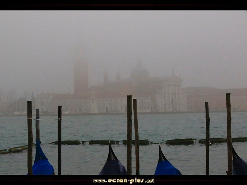 Les gondoles et l`ile de San Giorgio Maggiore dans la brume - Venise - Vénétie - Italie - © EcranPlus