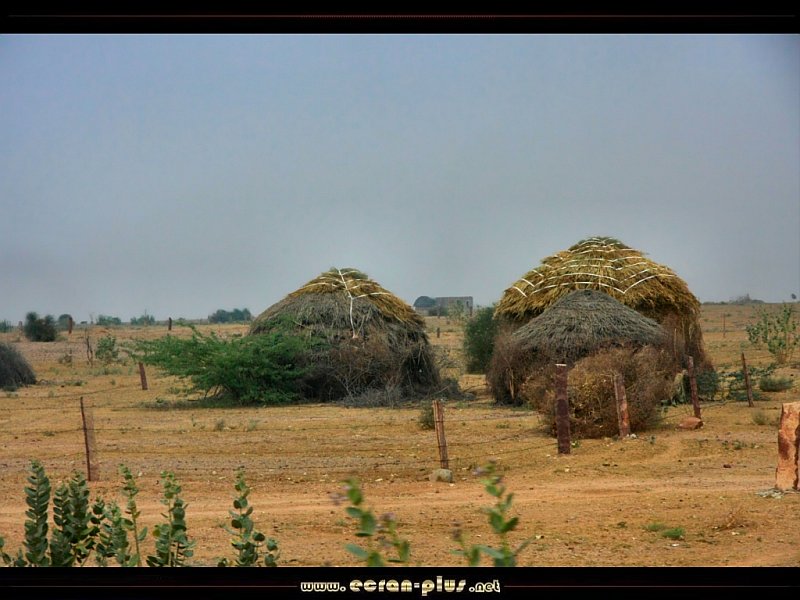 Village de huttes dans le désert du Thar entre Bikaner et Ramdevra - Rajasthan - Inde - © EcranPlus