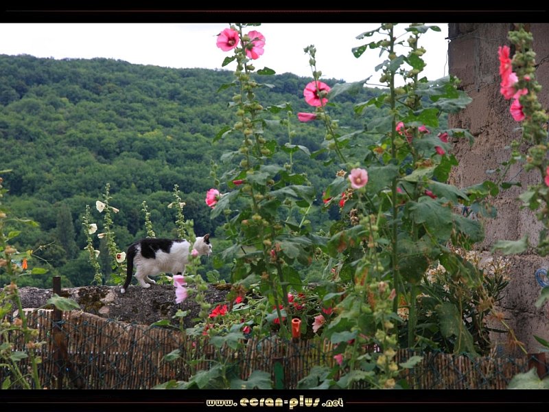 Chat et roses trémières à Salles la Source (12) - © EcranPlus