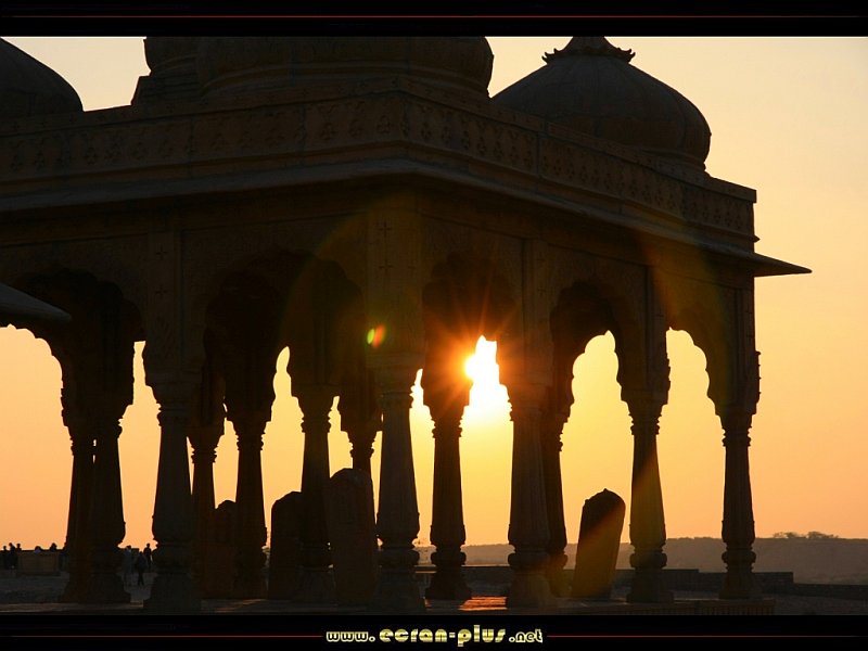 Coucher de soleil sur les cénotaphes de Jaisalmer - Rajasthan - Inde - © EcranPlus